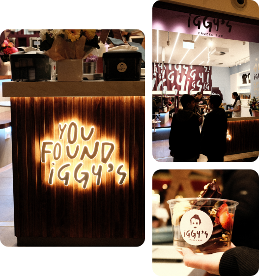 At Iggy's Frozen Bar, we aim to serve joy and delight in every cup, crafting unforgettable moments of happiness with our fresh, creative, and delicious Frozen Yoghurt & Acai. Iggy's offers an abundance of toppings and ever-changing flavours, promising a unique experience with every visit in a wholesome, but funky atmosphere.